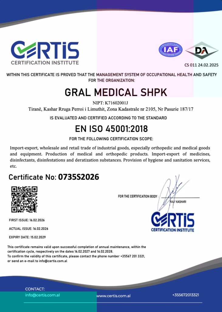 Gral Medical operates according to international standards for quality management and occupational safety.
